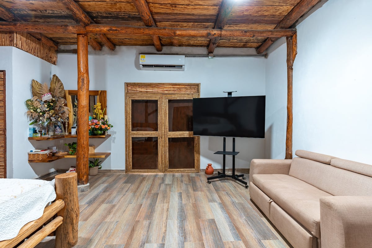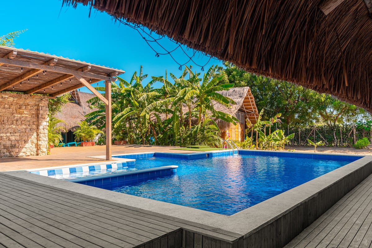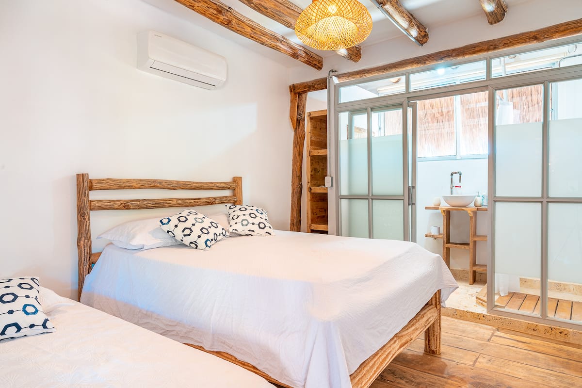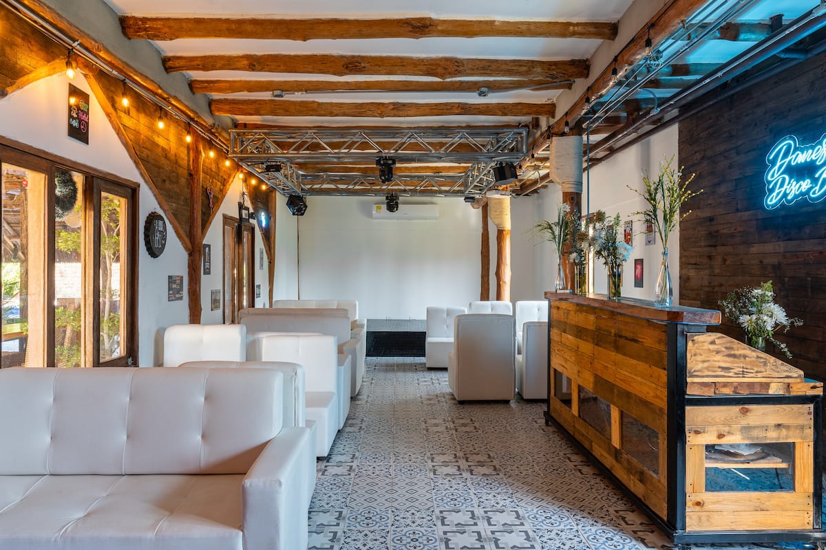 La cabaña olmo es una cabaña de playa que cuenta con 7 habitaciones con capacidad para 24 huéspedes, 11 baños, aire acondicionado en las zonas comunes y en las habitaciones vip, piscina privada, salón de juegos con Karaoke, cocina totalmente amoblada, horno parrilla y barbacoa. la cabaña se encuentra ubicada a 15 minutos del centro de cartagena en el kilómetro 5 vía al mar, acceso directo a playa. Ideal para Familias y Eventos