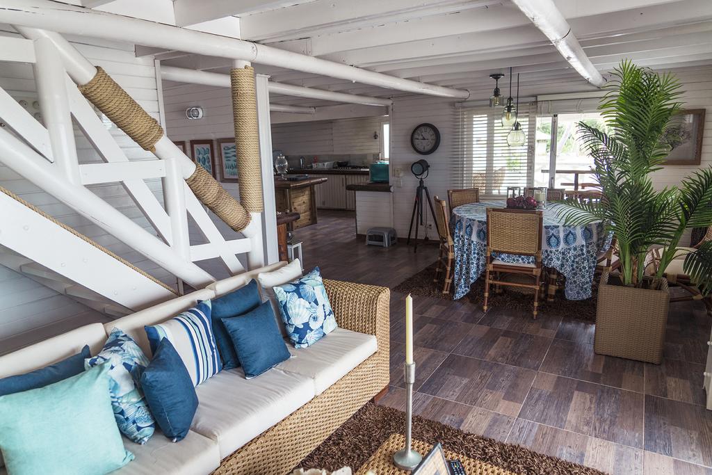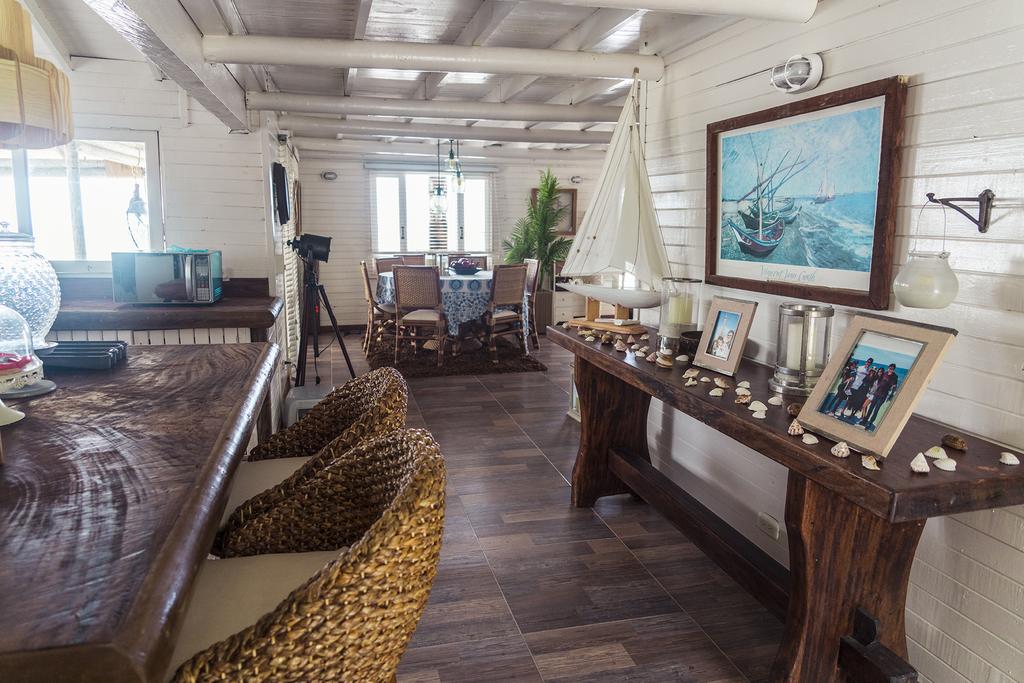 Los interiores son amplios y abiertos, con un diseño que permite que la brisa marina y la luz natural llenen cada espacio. La sala de estar y el comedor están decorados con un estilo costero elegante, y ofrecen vistas panorámicas del mar.
