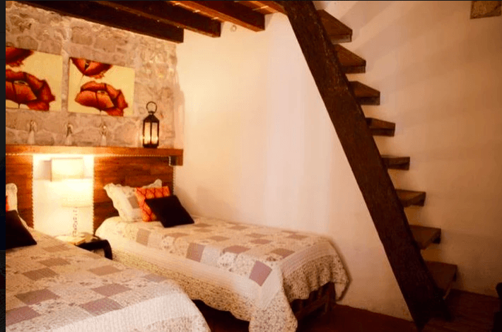 On the lower floor every space has been created to get the best comfort, the main room has very comfortable sofas and some wall art. In front of this room there is a bedroom with 2 twin beds with a beautiful private bathroom