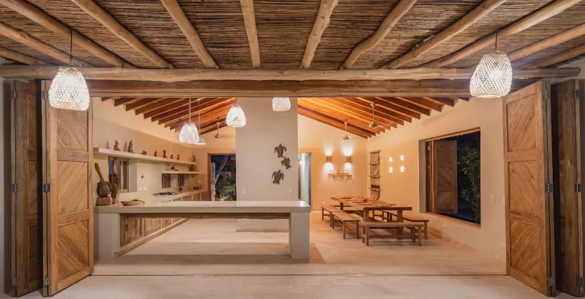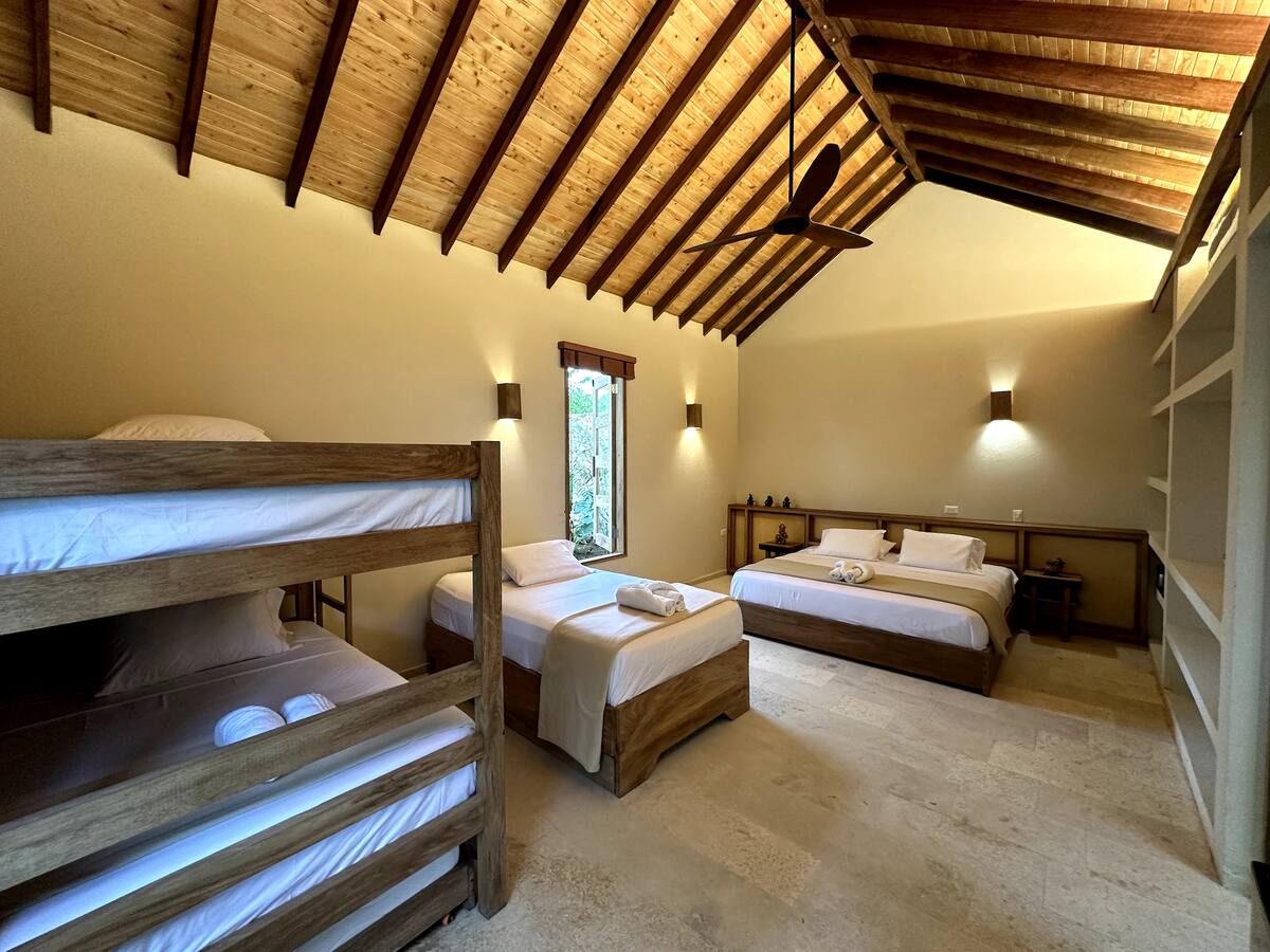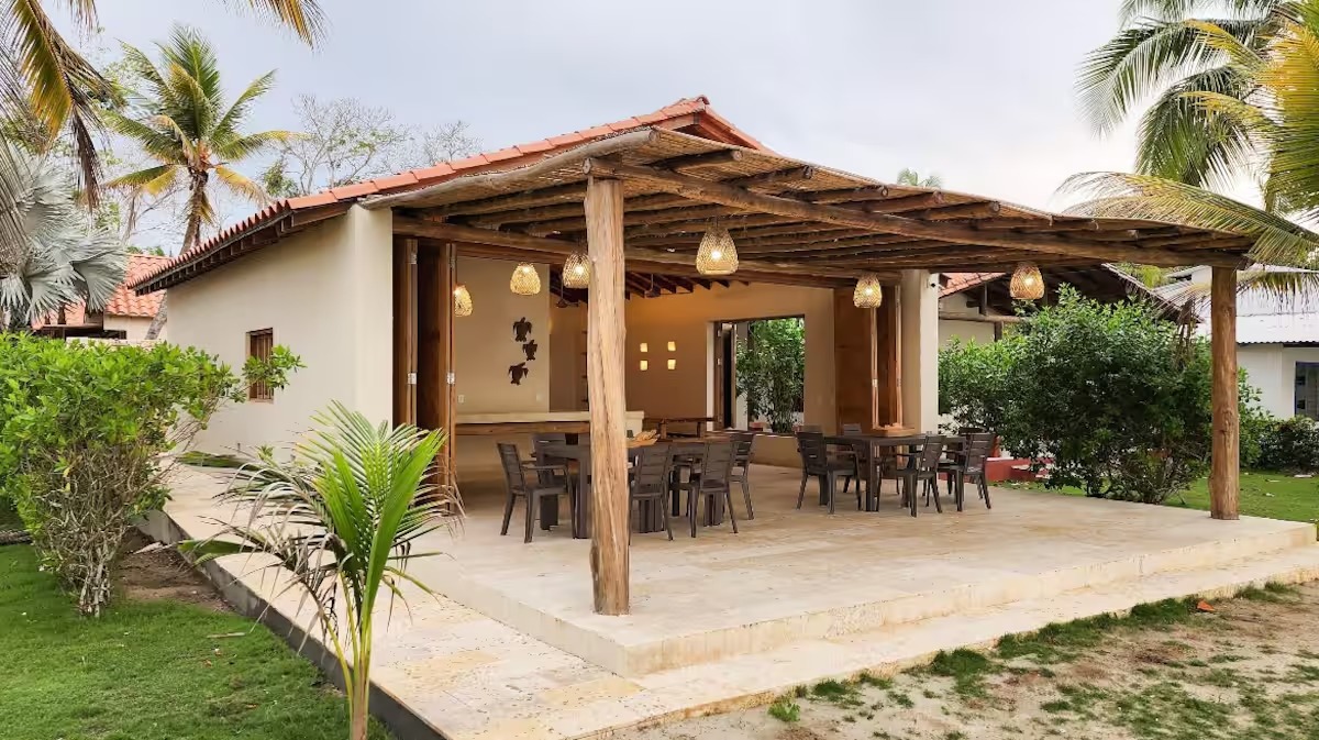 Ubicada en las hermosas playas de Tolú, Casa Piedra Mar es un exclusivo oasis frente al mar, diseñado para quienes buscan privacidad, comodidad y una experiencia auténtica junto al Caribe. Con su arquitectura en piedra natural y su entorno tropical, esta propiedad ofrece una mezcla perfecta entre lo rústico y lo sofisticado. La casa cuenta con 4 habitaciones tipo bungalows, independientes, frescos y completamente equipados, con capacidad para hasta 36 huéspedes. Ideal para grupos grandes, familias o retiros privados que deseen disfrutar del sonido del mar y la brisa constante en un ambiente exclusivo y relajado. Spa en casa frente al mar. Vive una experiencia tipo spa personalizada sin salir de la casa, ideal para desconectar y renovar energías mientras disfrutas del entorno natural. Tarde de cócteles y brisa tropical . Disfruta de una tarde especial con cócteles preparados en casa, frutas frescas y un ambiente relajado frente al mar. Un momento perfecto para compartir entre amigos o en pareja mientras el sol se oculta en el horizonte y cae la tarde sobre la playa.
